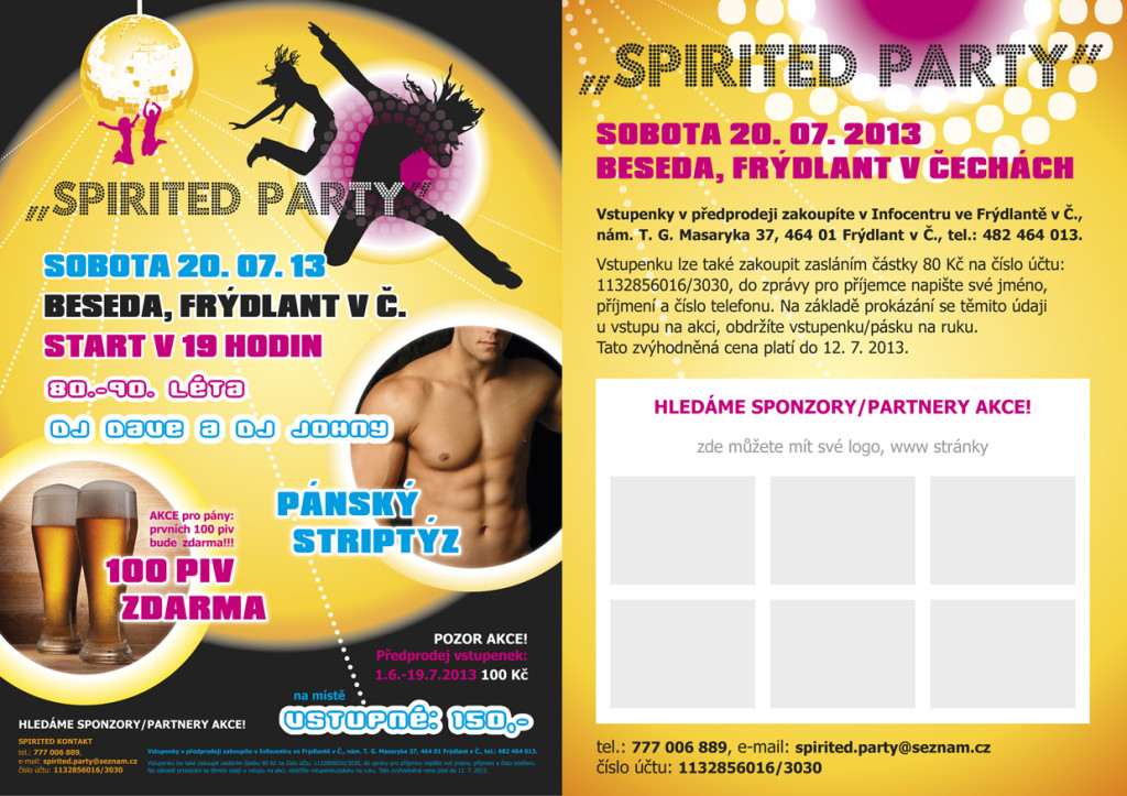 tel.: 777 006 889, e-mail: spirited.party@seznam.cz