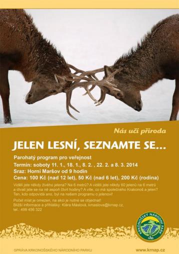 Viděli jste někdy živého jelena? Na 6 metrů? A viděli jste někdy 60 jelenů na 6 metrů a dívali jste se na ně aspoň čtvrt hodiny? A víte co má společného Krakonoš a jelen? Ten, kdo odpoví ano, byl na našem programu o jelenovi. Sraz