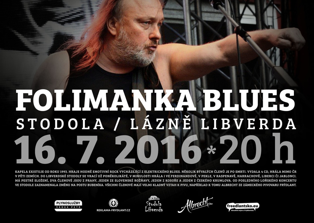 Kapela Folimanka Blues existuje od roku 1993. Hraje hodně emotivní rock vycházející z elektrického blues. Několik bývalých členů je po smrti. Vydala 4 CD, hrála mimo ČR v pěti zemích. Do libverdské Stodoly se vrací už poněkolikáté, v minulosti hrála i ve Ferdinandově, v Pekle, v Raspenavě, Harrachově, Liberci či Jablonci. Má pestré složení, dva členové jsou z Prahy, jeden ze slovenské Rožňavy, jeden z Kosoře a jeden z Českého Krumlova. Od posledního loňského koncertu ve Stodole zaznamenala změnu na postu bubeníka. Všichni členové mají velmi kladný vztah k pivu, například k tomu ze Zámeckého pivovaru Frýdlant – Albrecht.