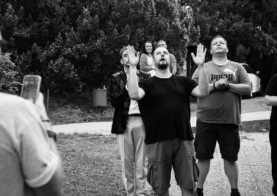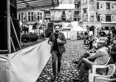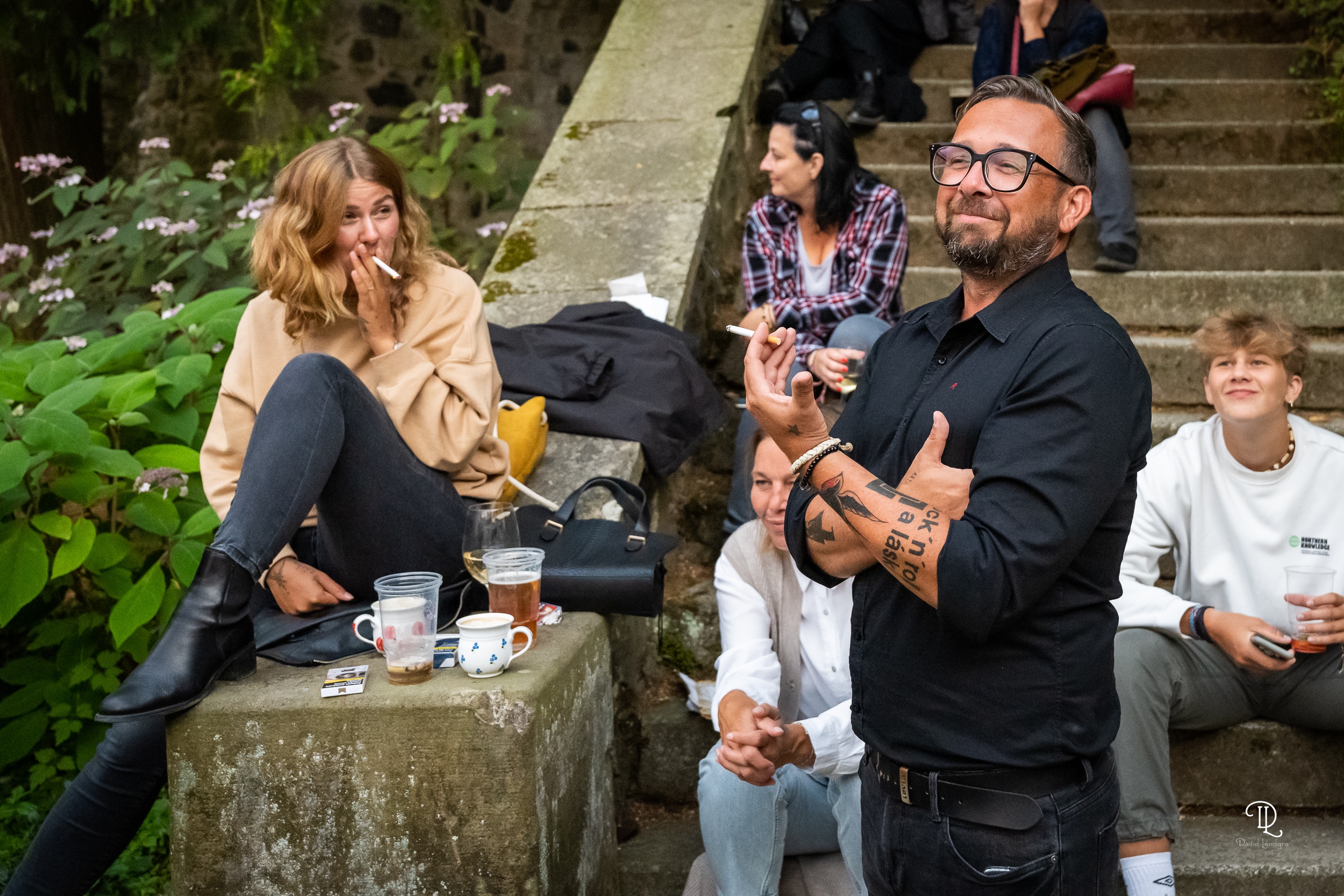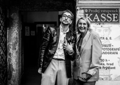 Zahajovací večer pokračoval v prostorech Kaplanky na hradu a zámku Frýdlant velmi zajímavou vernisáží výstavy Davida Landgráfa: Ohlédnutí. Oficiální fotograf festivalu Frýdlantsko Franze Kafky vybral z minulého ročníku 300 nejzajímavější fotografií.