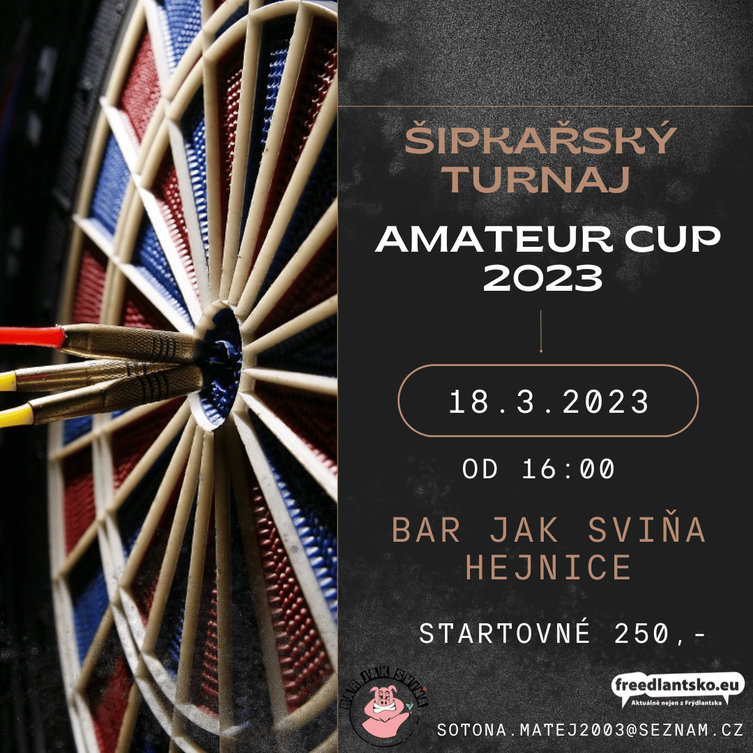 2023so18březen16.0023.00Amatérský šipkařský turnaj v HejnicíchBar jak sviňa, Klášterní 88, Hejnice16.00 - 23.00(GMT+01:00) Druh akceHejnice,Soutěže,Veřejná akce,Zábava