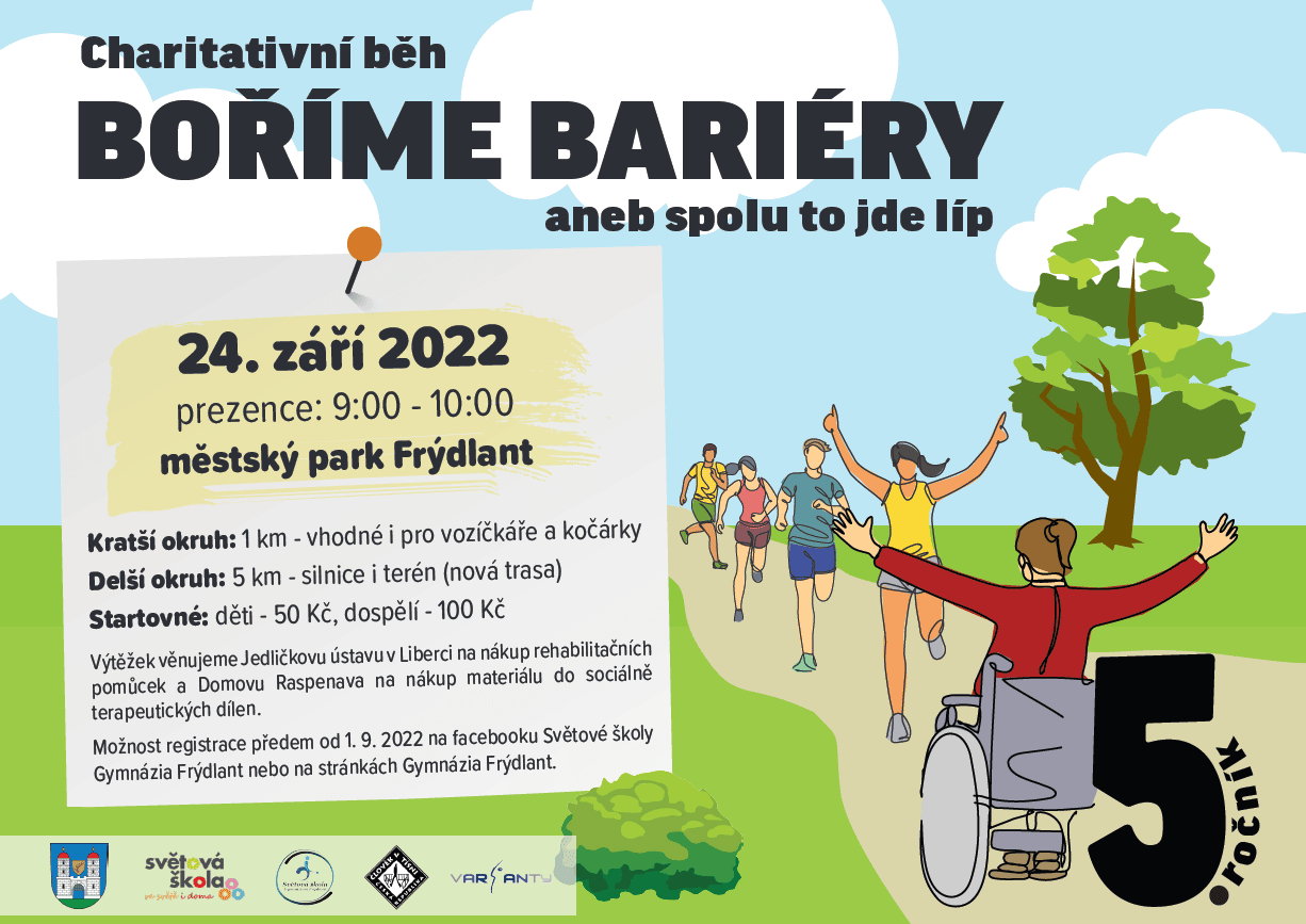 Pátý ročník charitativního běhu Boříme bariéry aneb spolu to jde líp se koná 24. září 2022 v městském parku ve Frýdlantu.