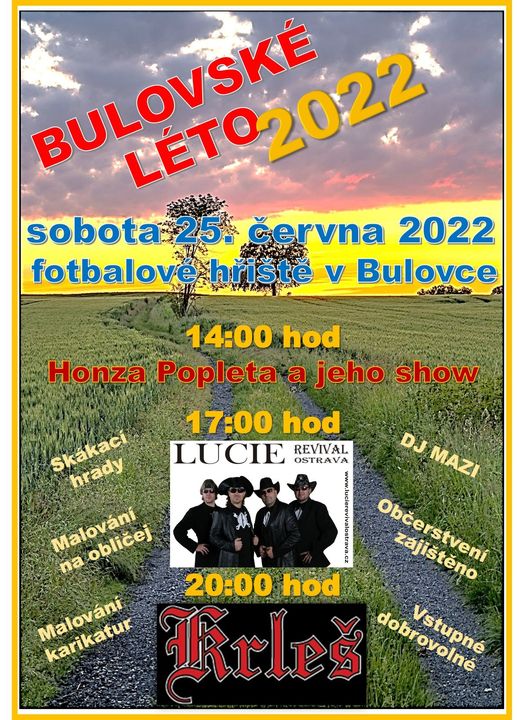 Bulovské léto 2022 se koná v soboru 25. června 2022 od 14.00 hodin na fotbalovém hřišti.