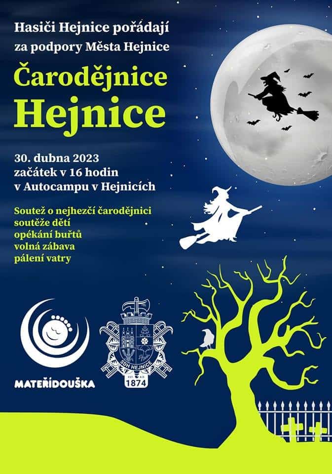 Hasiči Hejnice vás zvou na tradiční Pálení čarodějnic, které se bude konat v neděli 30.dubna 2023 od 16.00 hodin v Hejnicích v autokempu..
