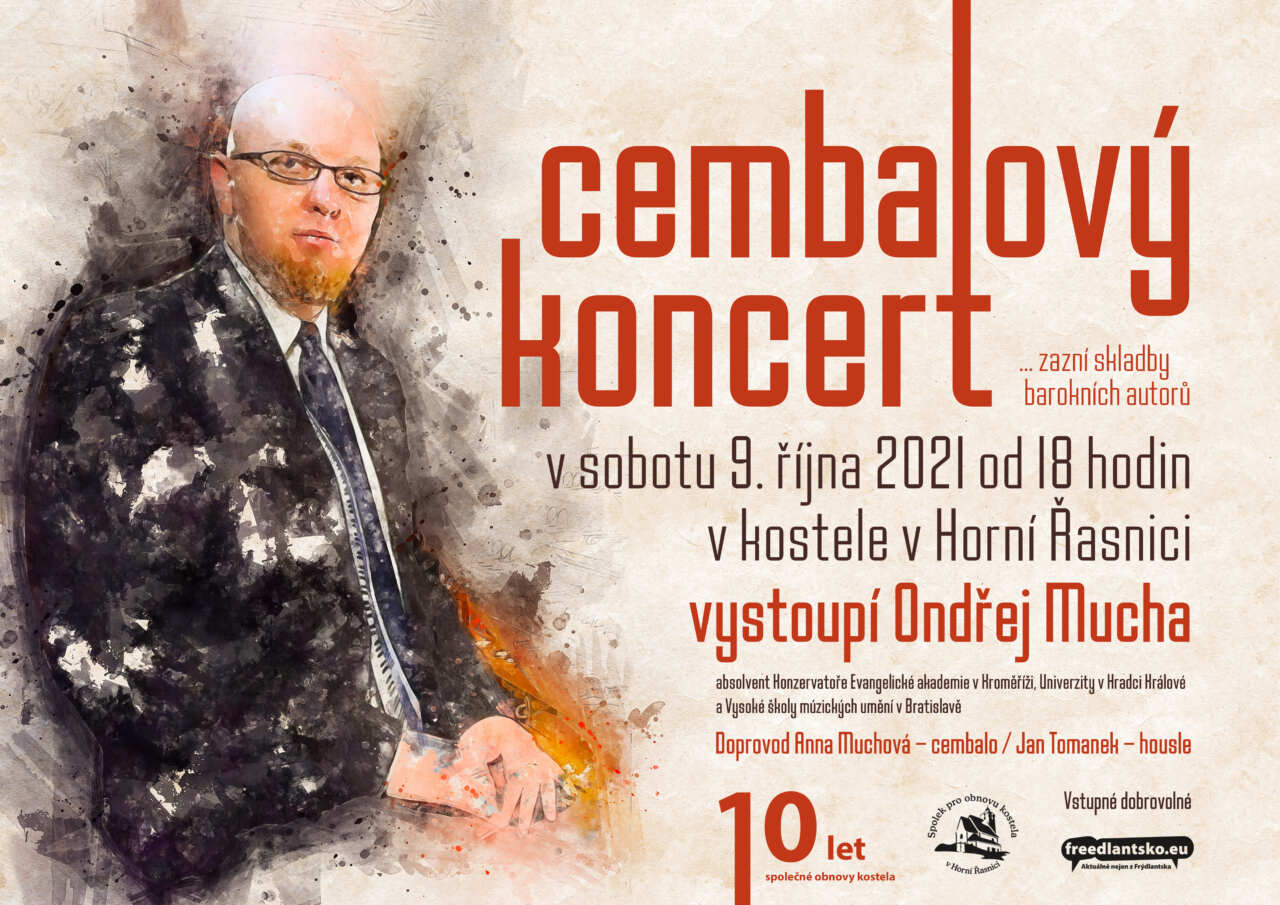 v sobotu 9. října 2021 od 18 hodin v rámci akce 10 let společné obnovy kostela. Vystoupí Ondřej Mucha – cembalo (absolvent Konzervatoře Evangelické akademie v Kroměříži, Univerzity v Hradci Králové a Vysoké školy múzických umění v Bratislavě). Doprovod: Anna Muchová – cembalo, Jan Tomanek – housle. Zazní skladby barokních autorů.
