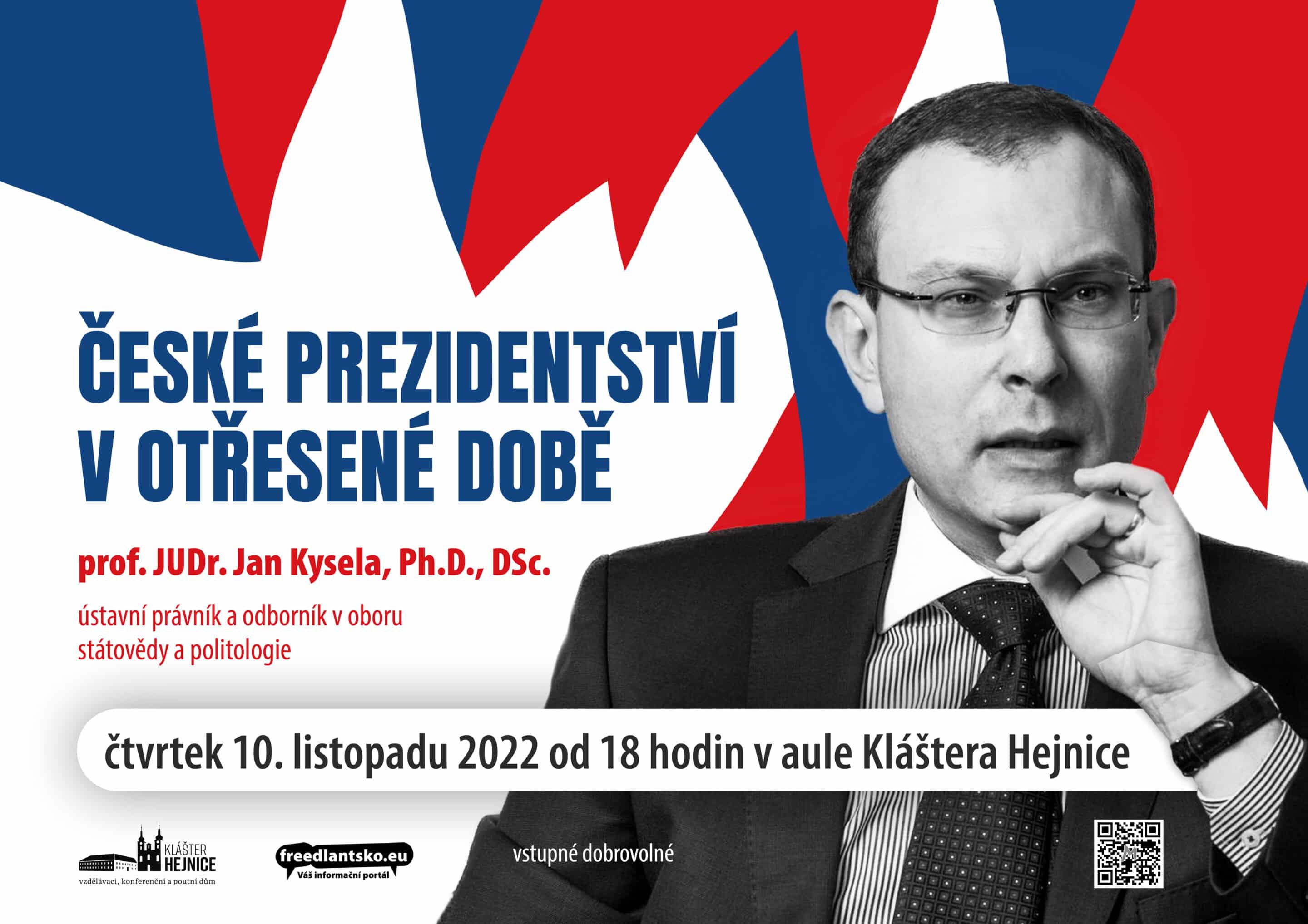 Zveme vás ve čtvrtek 10. listopadu 2022 od 18.00 hodin do auly Kláštera Hejnice na přednášku České prezidentství v otřesené době .