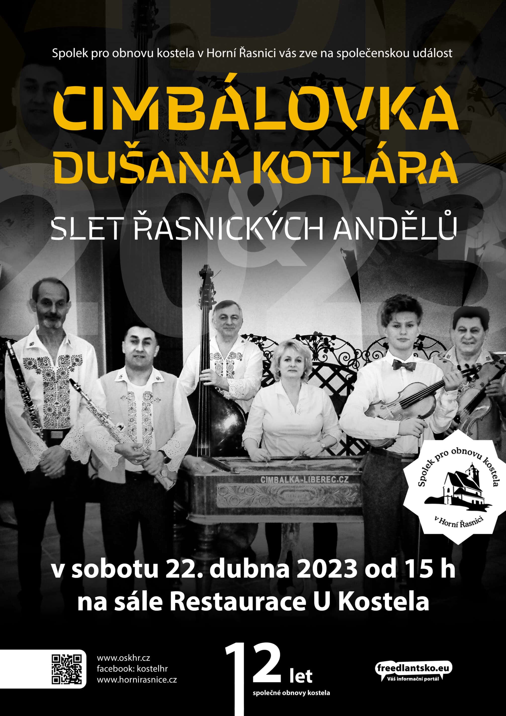 První jarní koncert s Cimbálovkou Dušana Kotlára proběhne spolu se Sletem řasnických andělů 2022 na sále Kulturního domu U kostela v sobotu 22. dubna 2023 od 15.00 hodin.