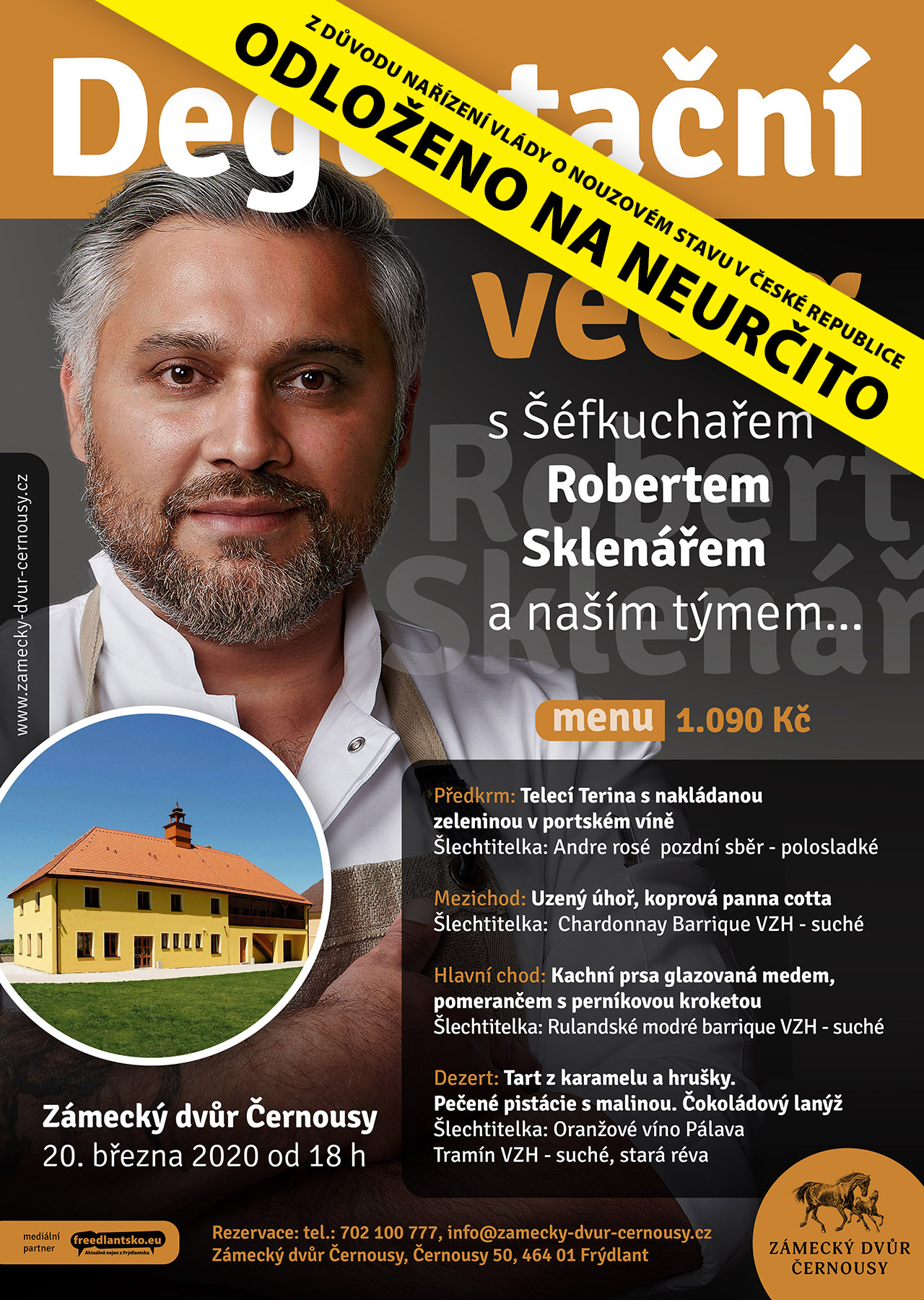 Využijte příležitosti a přijďte si vychutnat nezapomenutelnou kuchařskou šou v podání šéfkuchaře Roberta Sklenáře.