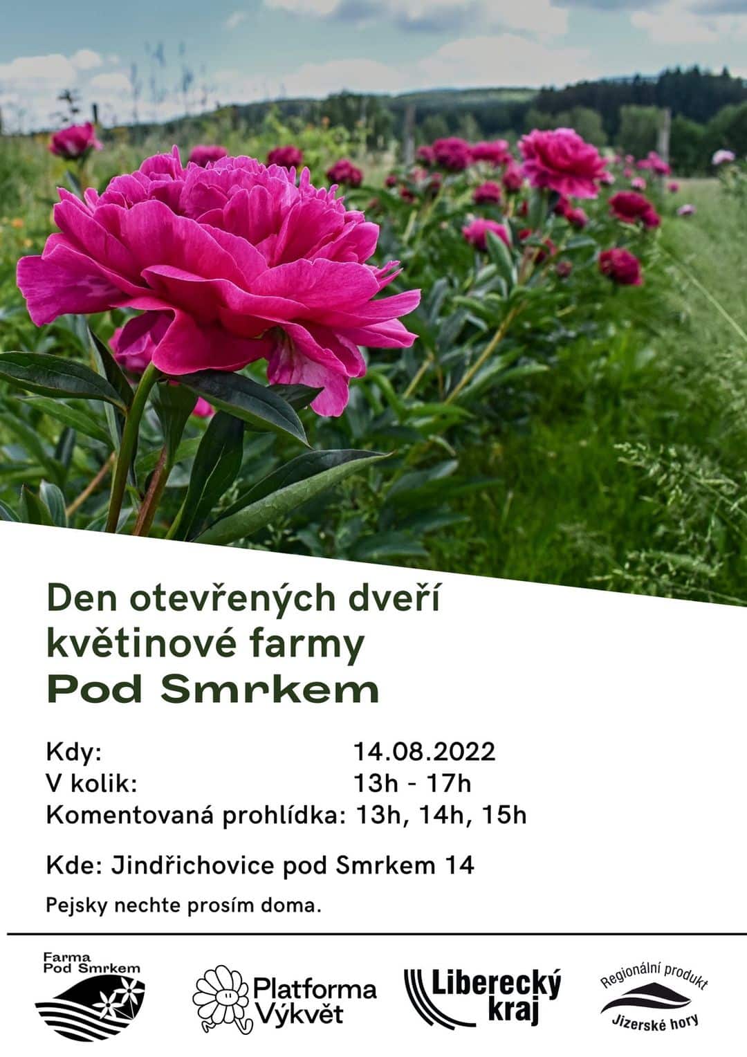 2022ne14srpen13.0017.00Den otevřených dveří na Květinové farměKvětinová farma pod Smrkem, Jindřichovice pod Smrkem 1413.00 - 17.00(GMT+02:00) Druh akceDen otevřených dveří,Exkurze,Posezení,Přednáška,Společenská akce,Veřejná akce