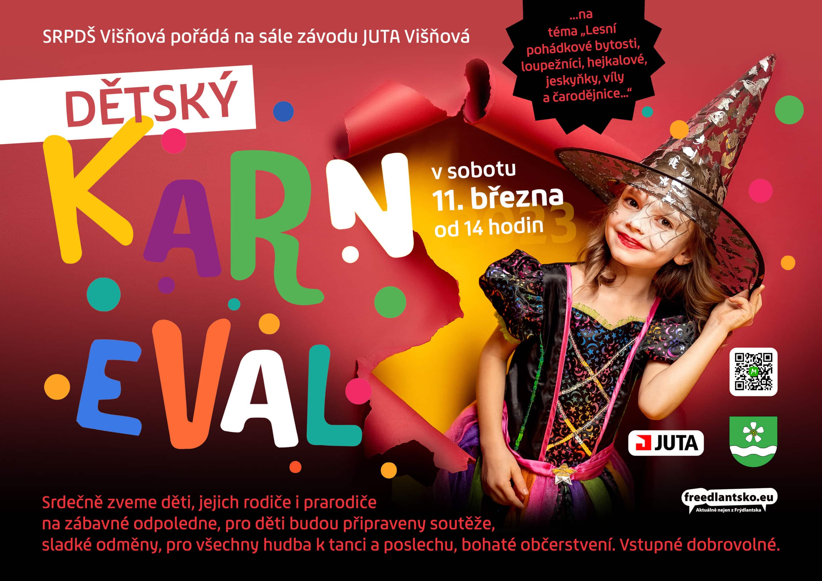 SRPDŠ Višňová pořádá v sobotu 11. března 2023 od 14.00 hodin na sále závodu JUTA Višňová „Dětský karneval“,