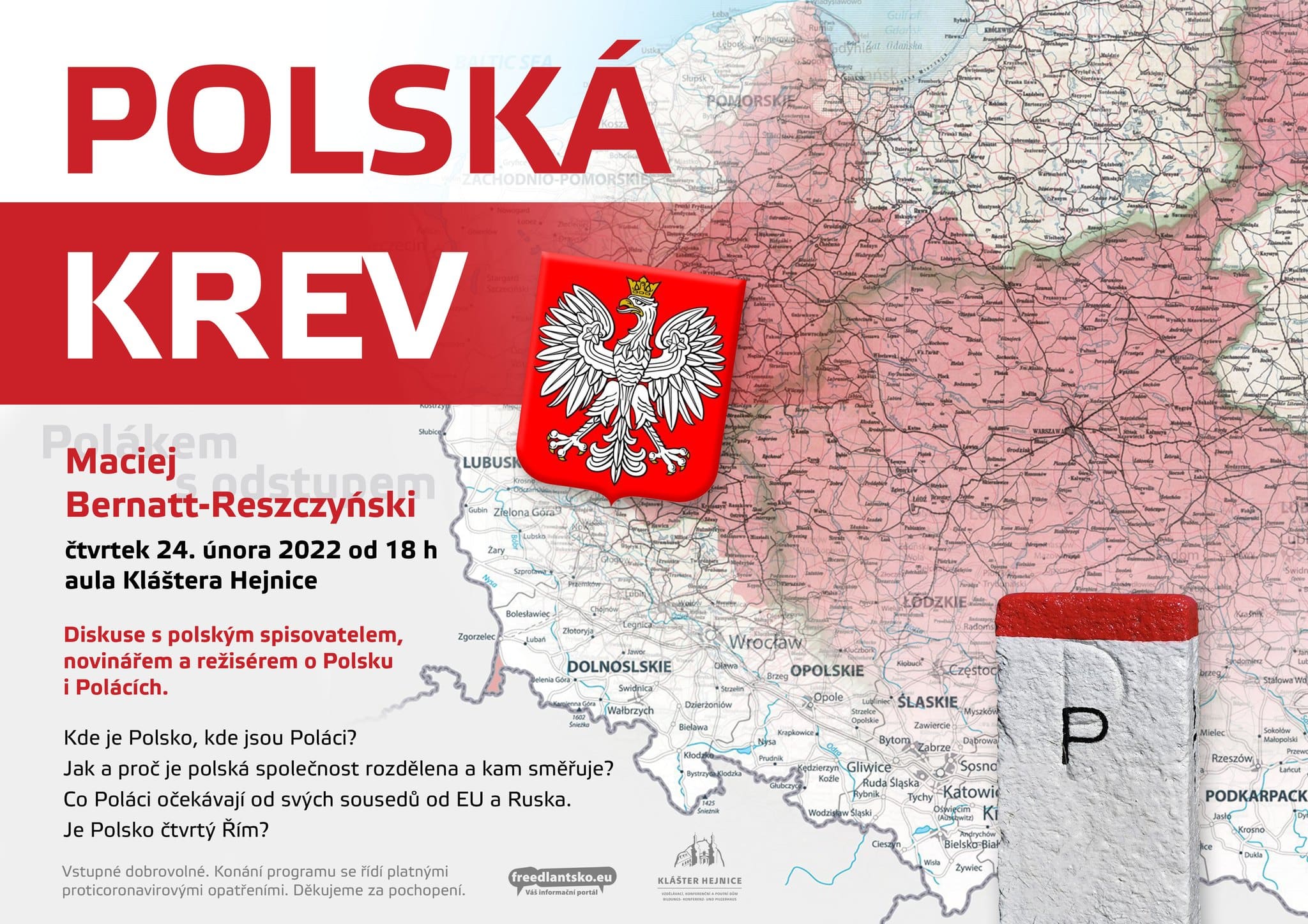 Polská krev! Polákem s odstupem Ve čtvrtek 24. února 2022 od 18.00 hodin bude v aule Kláštera Hejnice přednášet Maciej Bernatt-Reszczyński, polský spisovatel, novinář a režisér o