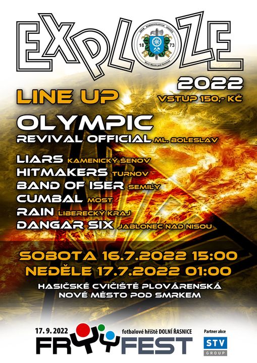 V sobotu 16. července 2022 se od 15.00 hodin koná na hasičském cvičišti Plovárenská v Novém městě pod Smrkem festival Exploze 2022.