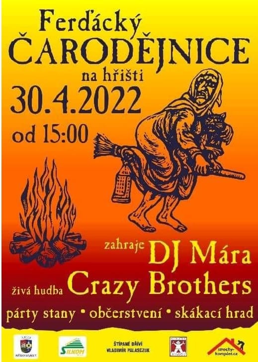 Tradiční pálení čarodějnic s doprovodným programem se i letos v sobotu 30. dubna 2022 od 15.00 hodin koná na Ferdinandově na hřišti u Ferdy. Akce je v režii Vrtulí Ferdinandov. zahraje DJ