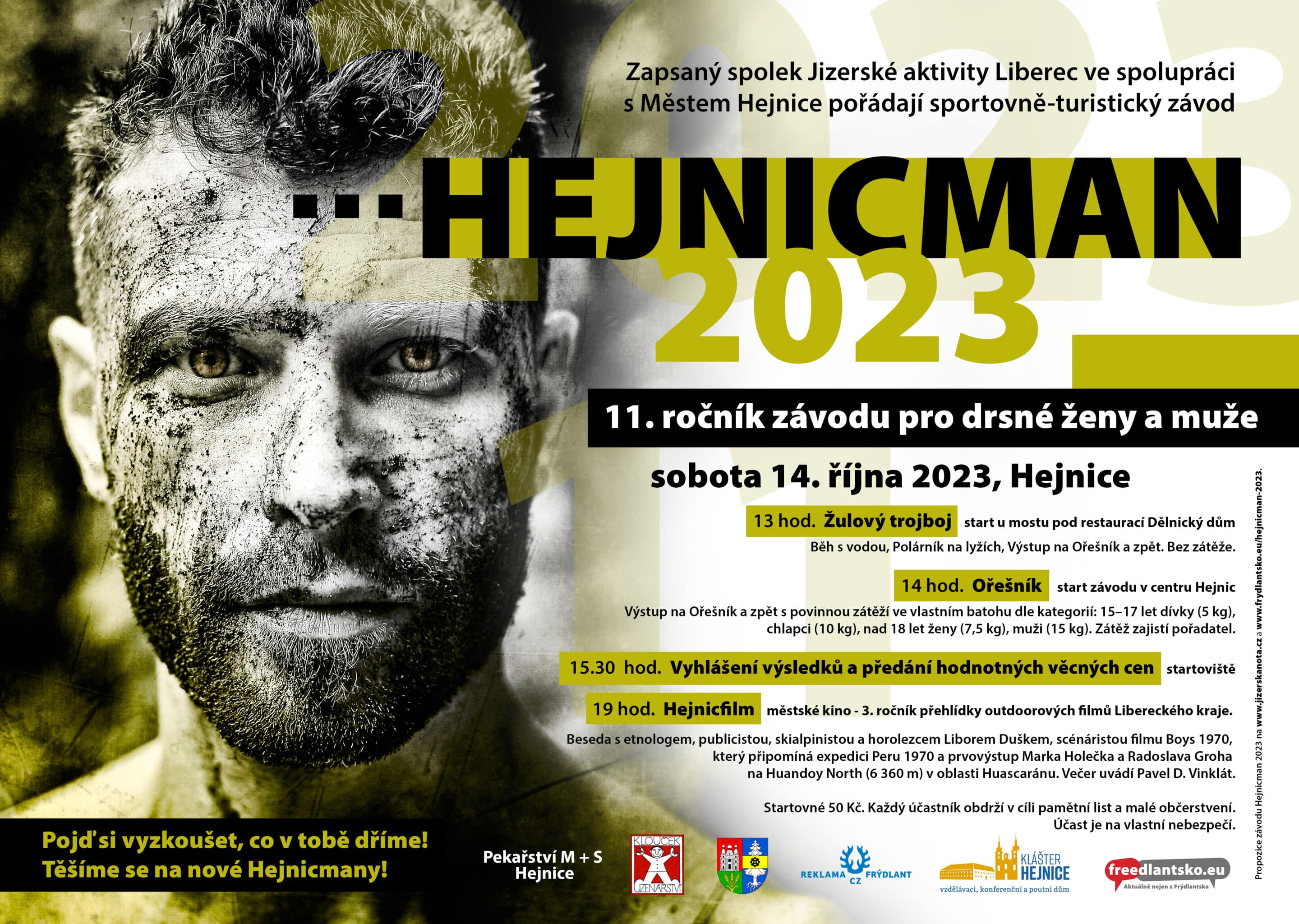 Zapsaný spolek Jizerské aktivity ve spolupráci s Městem Hejnice pořádají sportovně-turistický závod HEJNICMAN 2023 11. ročník závodu pro drsné ženy a muže sobota 14. října 2023, Hejnice 13.00 hodin Žulový trojboj start