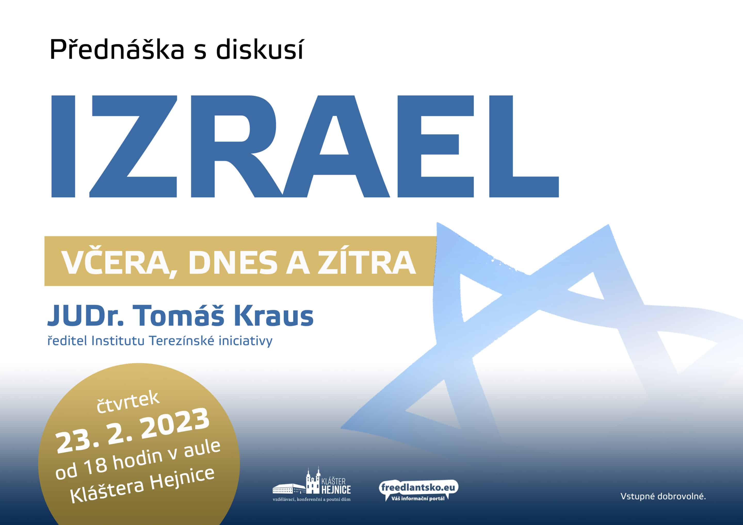 Zveme vás ve čtvrtek 23. února 2023 od 18.00 hodin do auly Kláštera Hejnice na přednášku s diskuzí Izrael – včera, dnes a zítra.