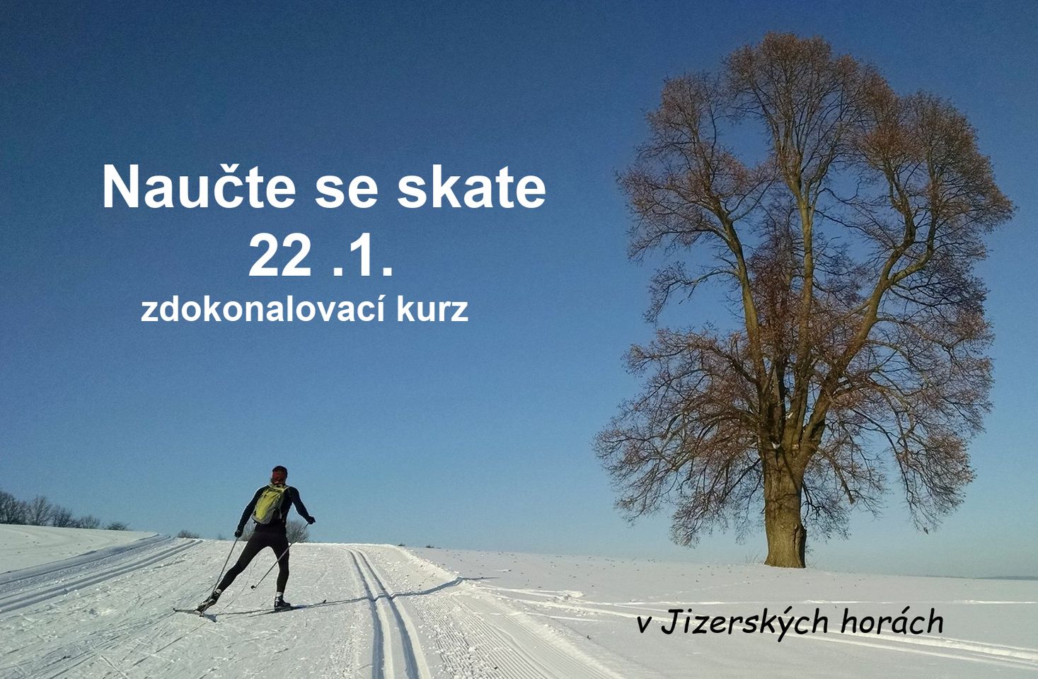 Na kurz si musíte přivézt svoje běžky (skatové nebo combi) hole (na skate je délka mezi bradou a nosem) a boty. Výuku uskutečníme v krásném okolí osady Jizerka (870 m). Zatímco v Bedřichově prší, na Jizerce většinou ještě padají vločky:-) Na Jizerku musíte dorazit vlastním autem. (Hromadnou dopravou se tam bohužel nedostanete.)