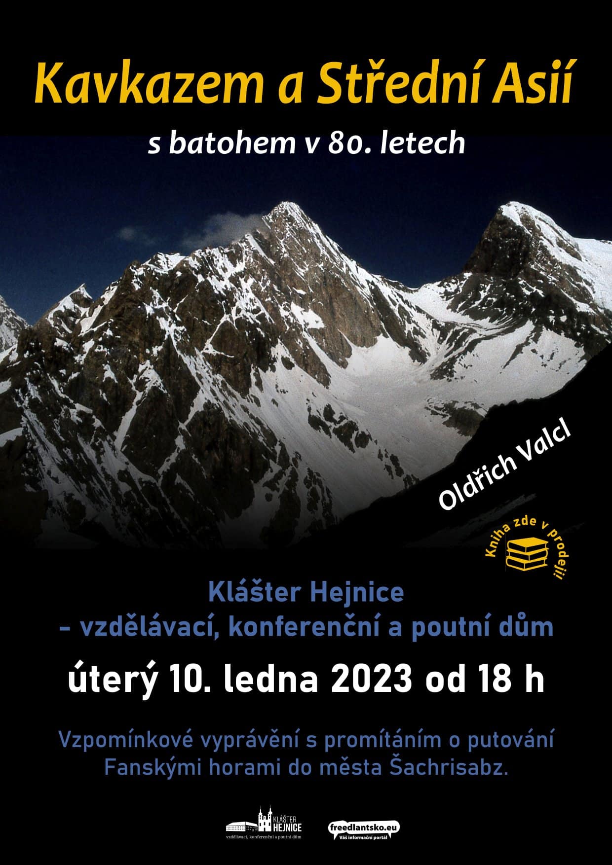 Zveme vás v úterý 10. ledna 2023 od 18.00 hodin do auly Kláštera Hejnice na přednášku Kavkazem a Střední Asií – Fanskými horami do města Šachrisabz .