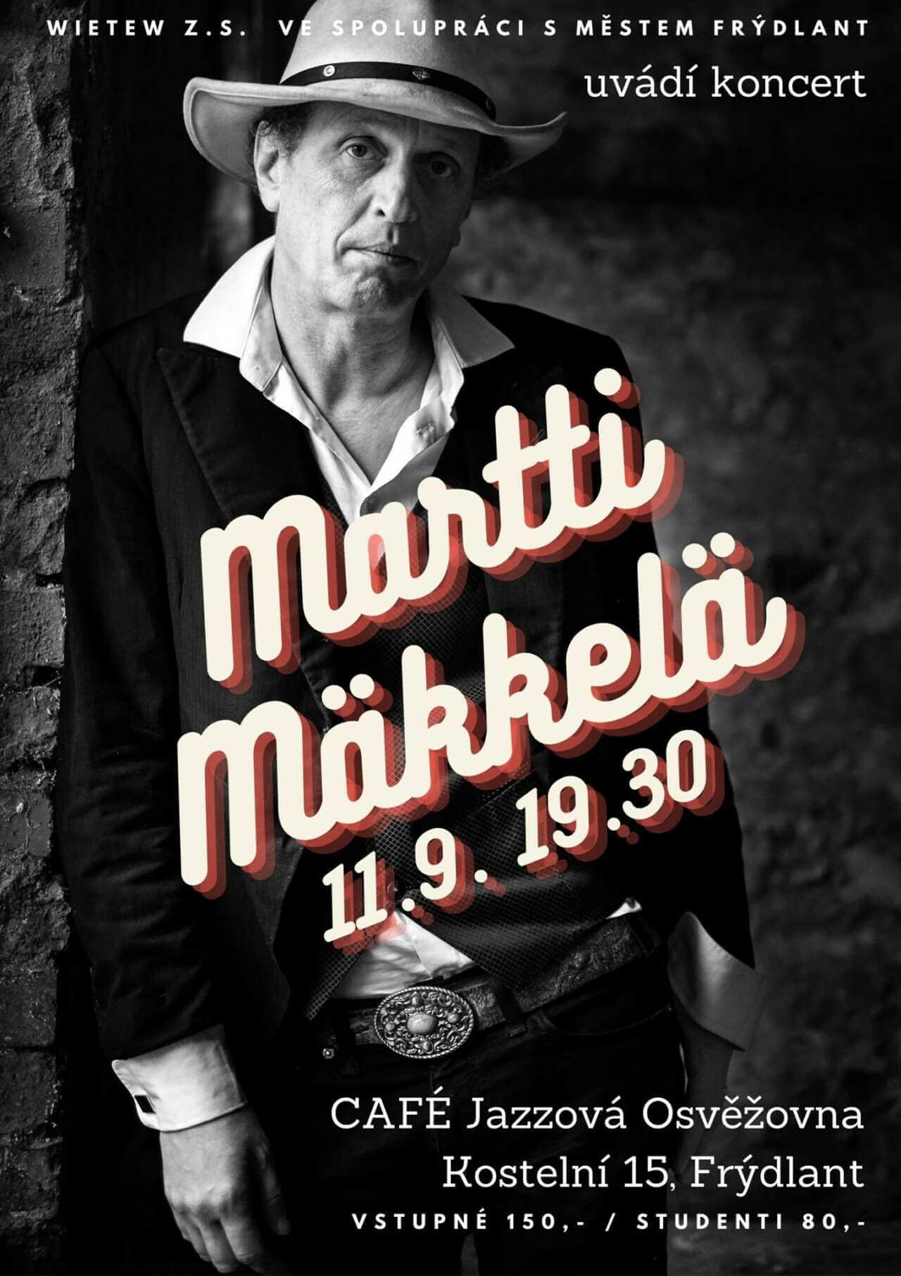 Wietev z.s. ve spolupráci s městem Frýdlant uvádí koncert finsko-německého hudebníka, performera a skladatele MARTTI MÄKKELÄ V pátek 11.9. od 19.30 CAFÉ Jazzová Osvěžovna (Kostelní 15, Frýdlant) V roce 2017 byl za