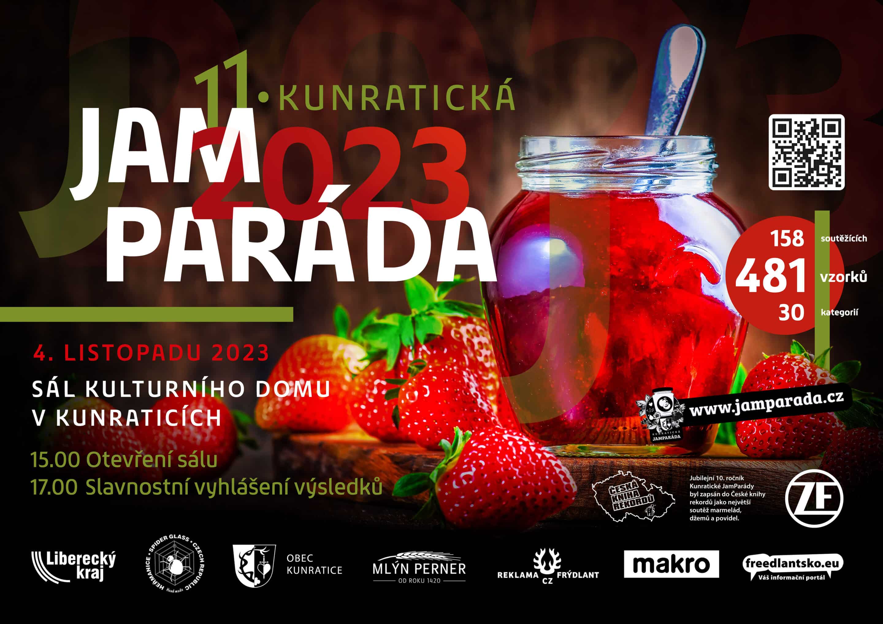 Obec Kunratice tradičně pořádá soutěž ve vaření marmelády, letos se koná již 11. ročník naší marmeládové soutěže. Kunratická JamParáda 2023 Veřejná ochutnávka se bude konat v sobotu 4. listopadu 2023 od 15.00