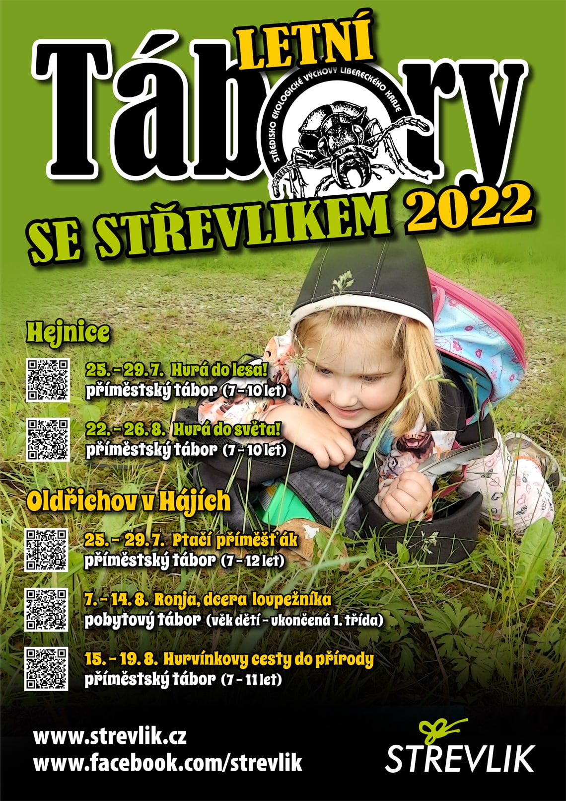 2022po25červenec(červenec 25)8.3026srpen(srpen 26)19.30Letní tábory se Střevlíkem 2022Střevlík Hejnice, Jizerská 190, 463 62 Hejnice(červenec 25) 8.30 - (srpen 26) 19.30(GMT+02:00) Druh akceTábory
