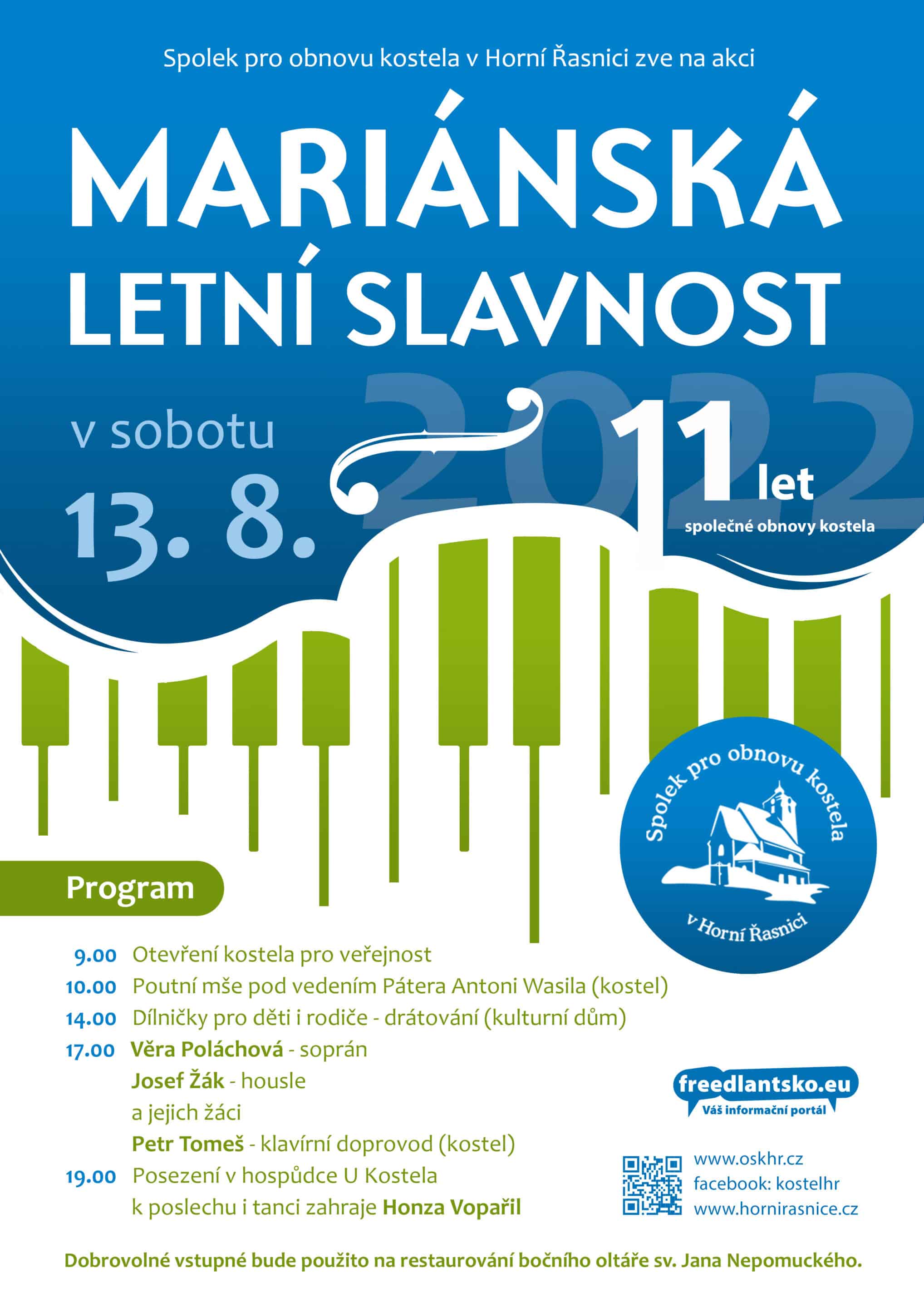 V sobotu 13. srpna.2022 od 9.00 hodin vás Spolek pro obnovu kostela v Horní Řasnici zve na Mariánskou letní slavnost