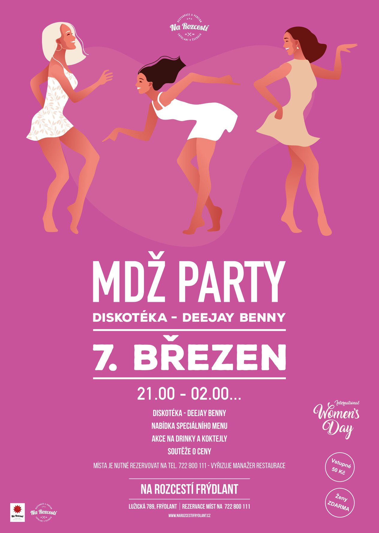 Srdečně Vás zveme na MDŽ PARTY, která se bude konat v sobotu 7. března 2020 od 21.00 do 02.00.