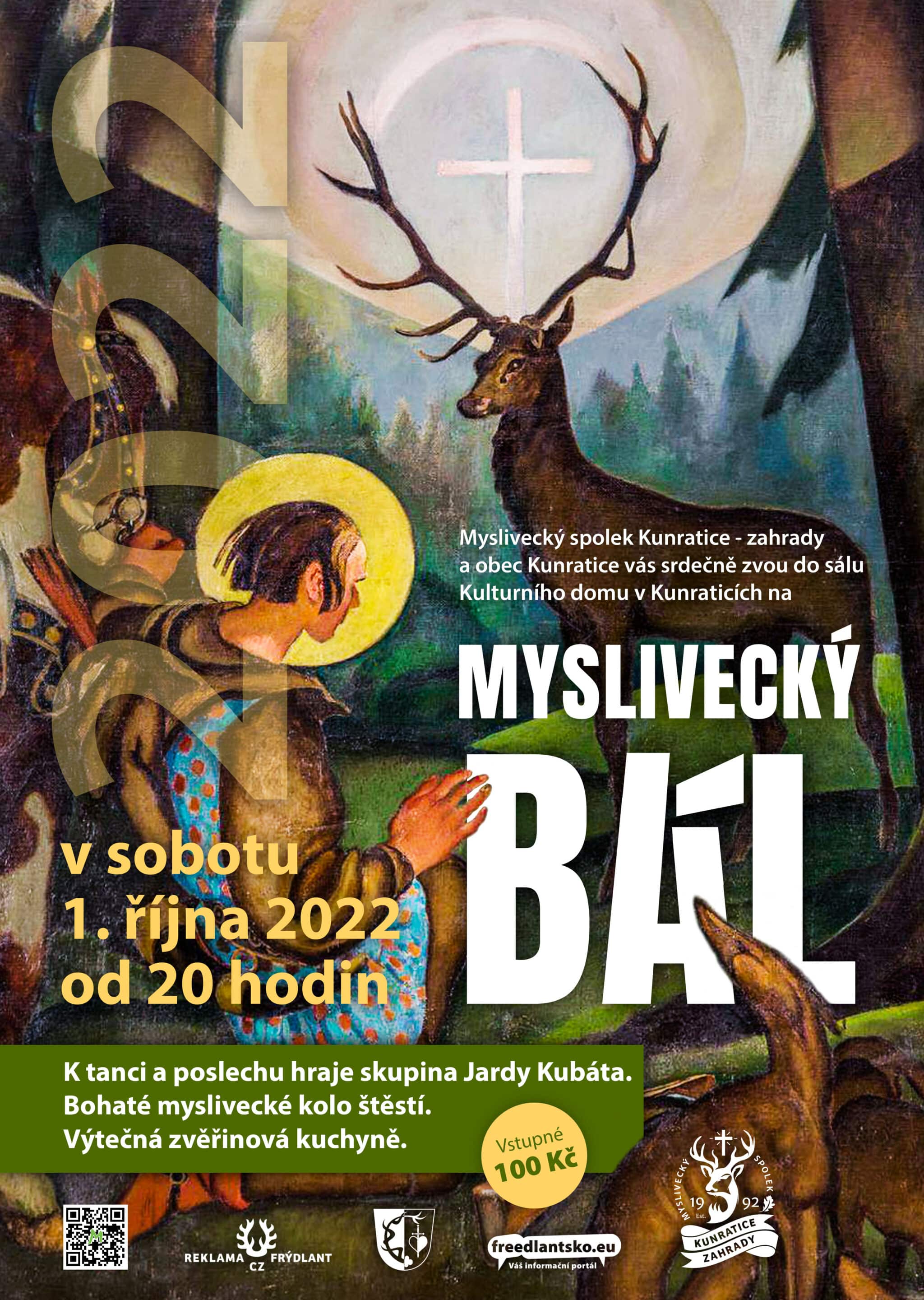 Myslivecký spolek Kunratice – zahrady a obec Kunratice srdečně zvou do sálu kulturního domu na Myslivecký bál. V sobotu 1. října 2022 od 20.00 hodin. K tanci a poslechu hraje skupina Jardy