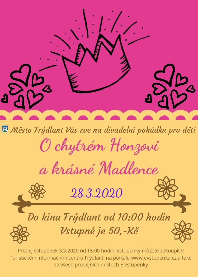Prodej vstupenek 3.3.2020 od 15:00 hodin v TIC Frýdlant, na portále www.evstupenka.cz a ve všech prodejních místech E-vstupenky.
