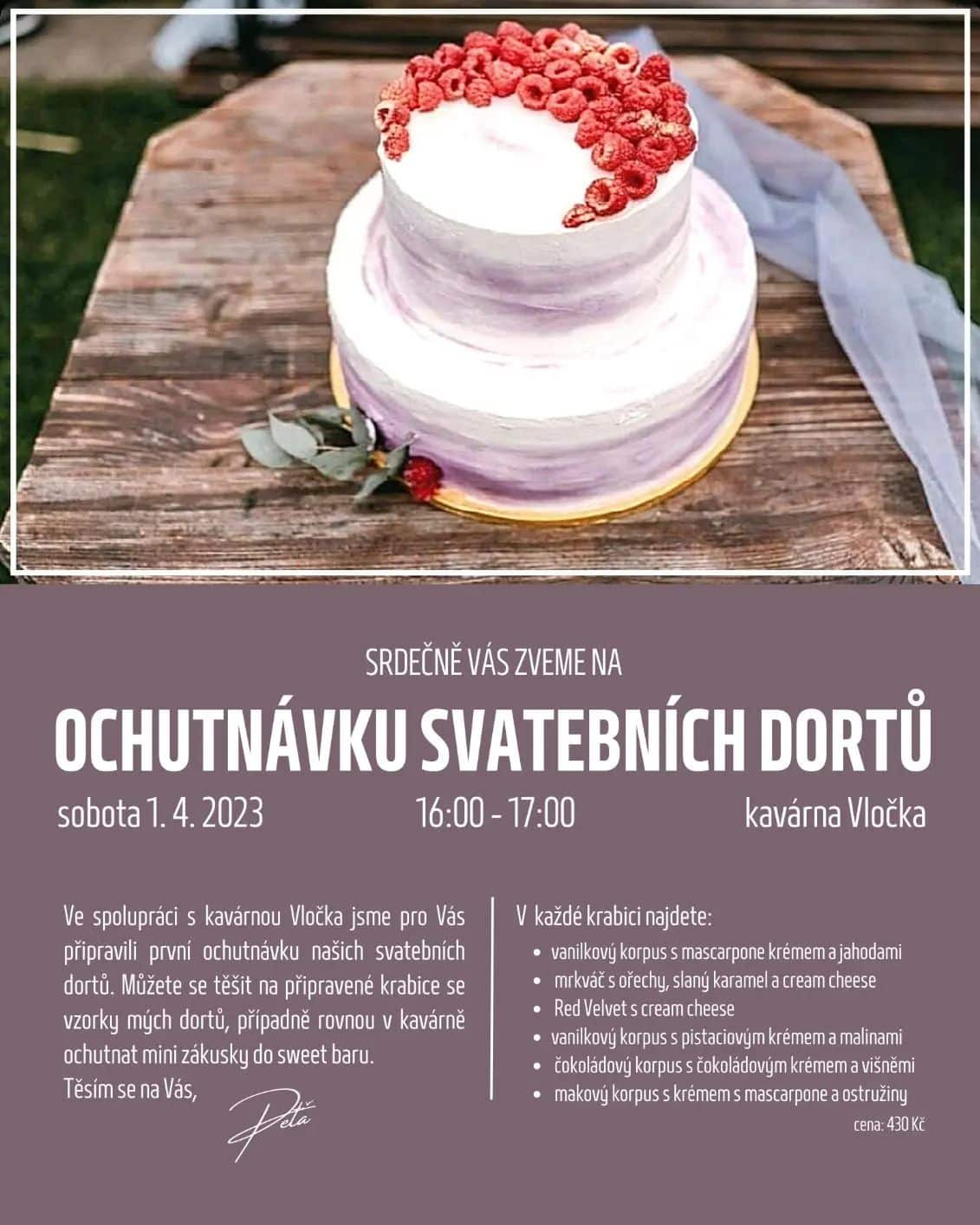 Cukrárna a Kavárna Vločka a Pečení Od Péti vás zvou na Ochutnávku svatebních dortů v sobotu 1. dubna 2023 od 18.00 hodin a v sobotu