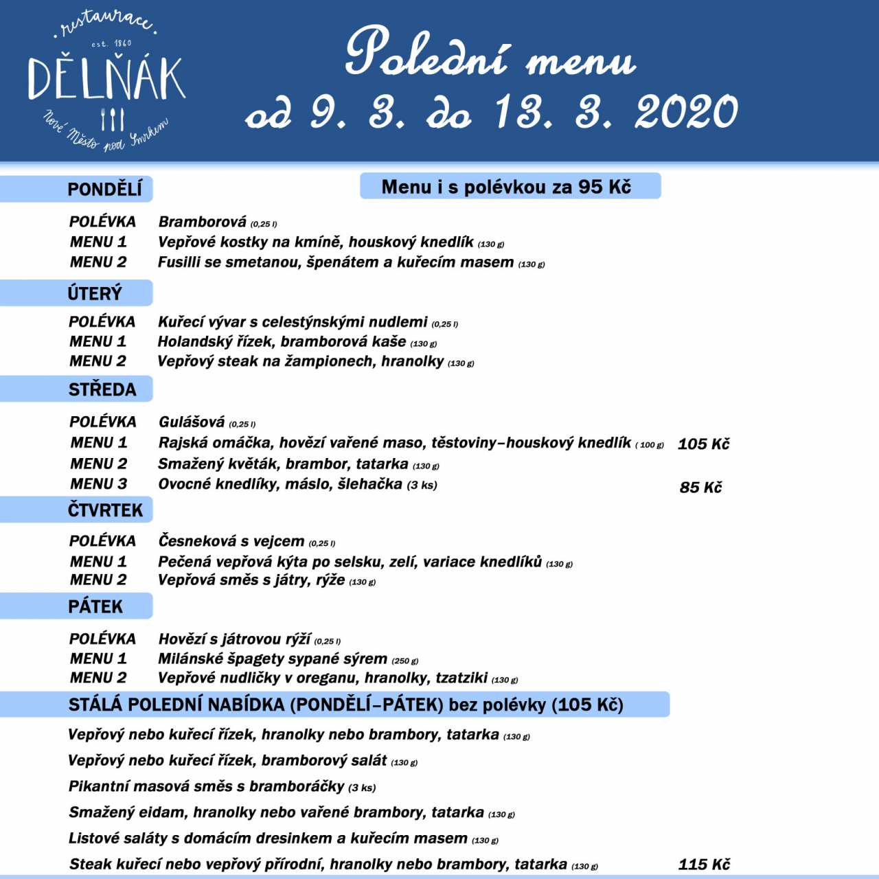 MENU NA TÝDEN 9.–13. března 2020 od 11 h do 14 h, nebo do vyprodání