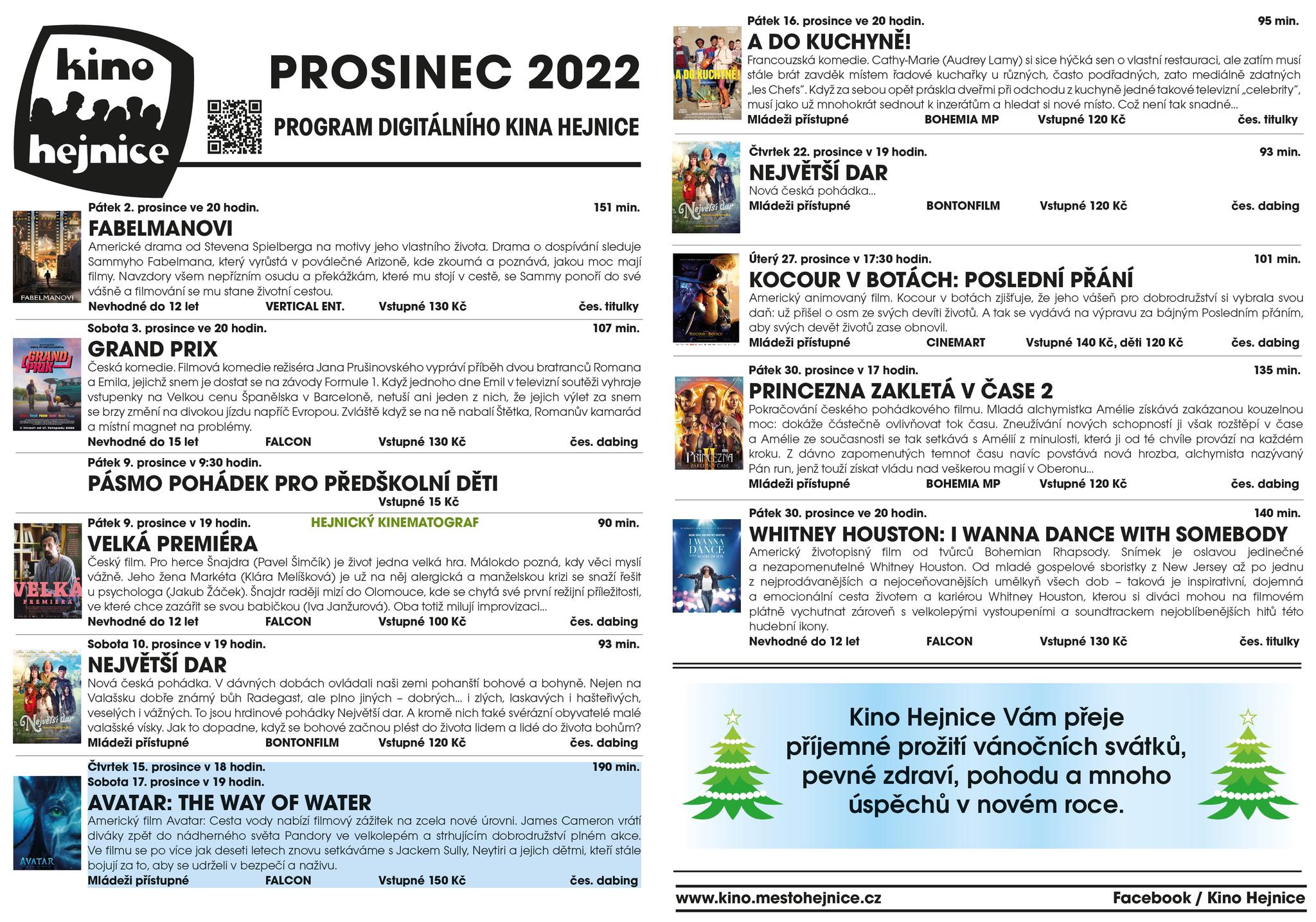 Představujeme Vám program kina Hejnice na měsíc prosinec 2022.