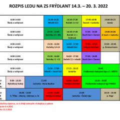 Rozpis ledu na zimním stadionu Frýdlant 14. – 20. března 2022