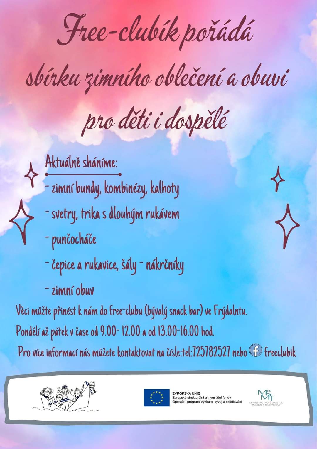 v období listopad a prosinec 2022 pořádá FreeClub sběr zimního oblečení.