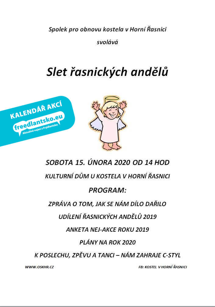 2020so15únor14.0017.00Slet řasnických andělůKostel Neposkvrněného Početí Panny Marie, Horní Řasnice14.00 - 17.00(GMT+01:00) Druh akceBeseda,Koncert,Pomníčky a pietní místa,Přednáška,Vzpomínkové akce,Zábava