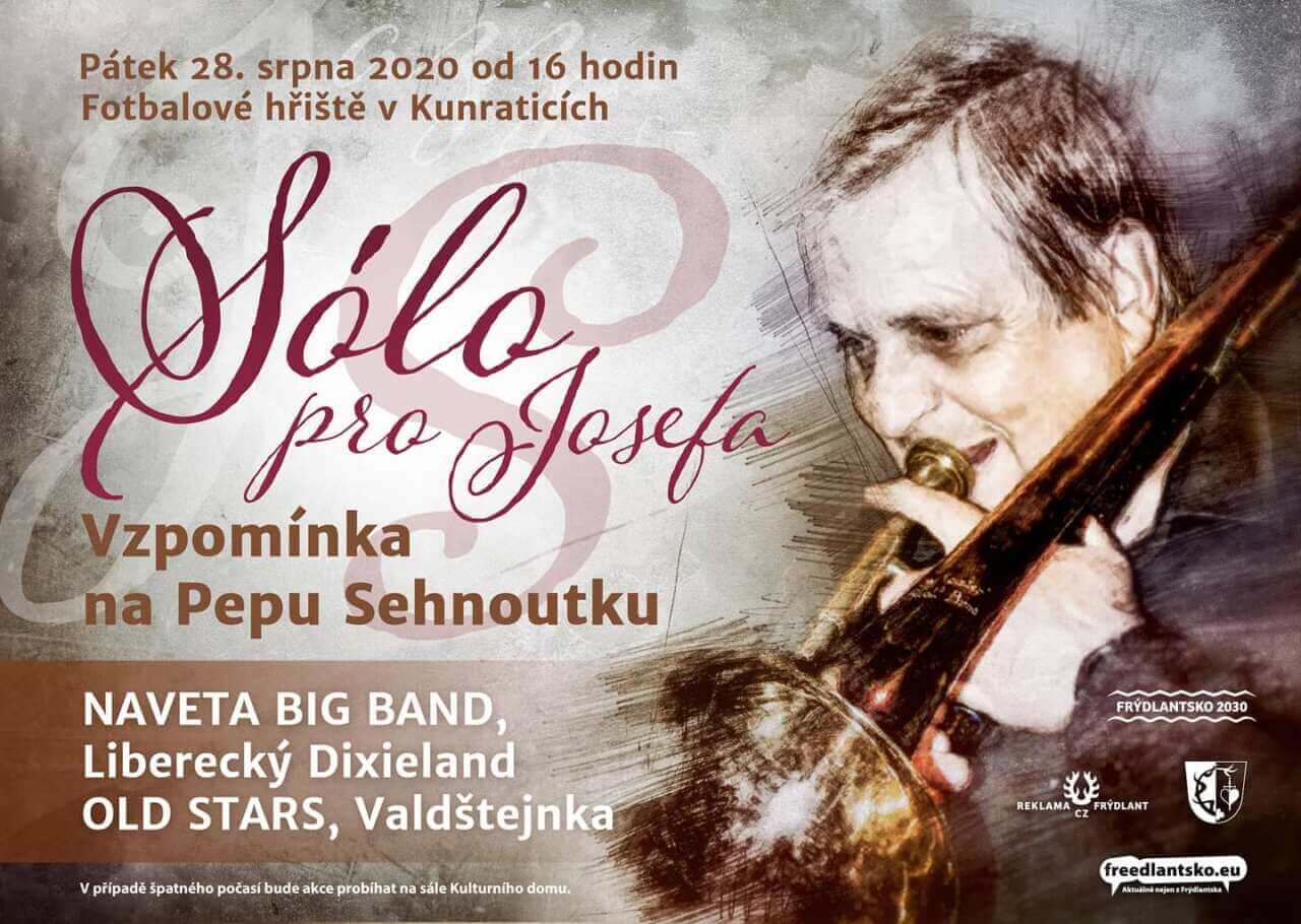 Pozvánka na koncert a vzpomínka na skvělého člověka. Kdy: Pátek 28. srpna 2020 od 16 hod Kde: Fotbalové hřiště v Kunraticích Sólo pro Josefa Vzpomínka na