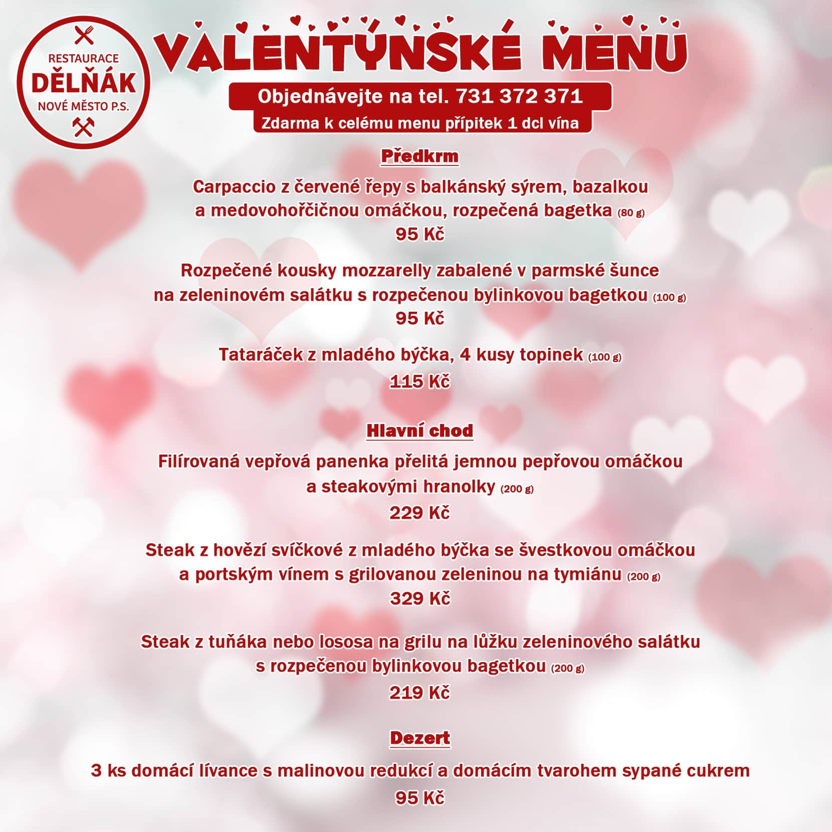 Máme pro Vás skvělou zprávu. Večeři si můžete vybrat z našeho Valentýnského menu. Jídlo pro Vás připravíme a zabalíme.