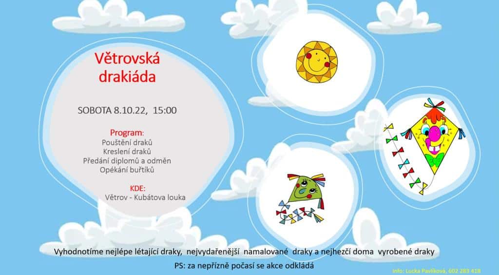 V sobotu 8. října 2022 od 15.00 hodin se koná Větrovská drakiáda, Větrov – Kubátova louka.
