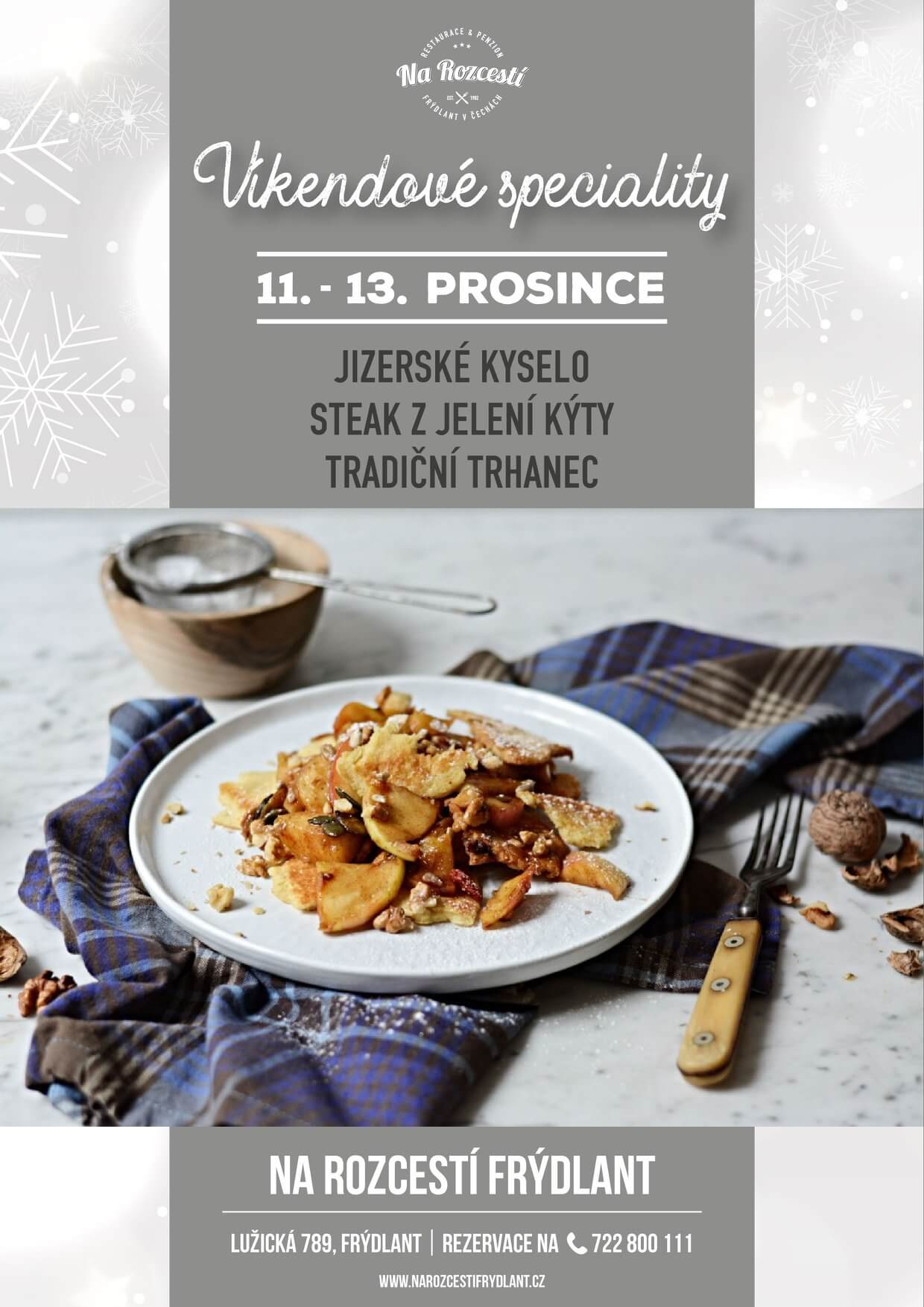 Víkendové speciality rodinné restaurace a penzionu Na Rozcestí Frýdlant Zveme Vás na víkendové speciality, které budeme nabízet od pátku 11.12.2020 do neděle 13.10.2020. Přijďte dokud to jde, neboť „neznáme