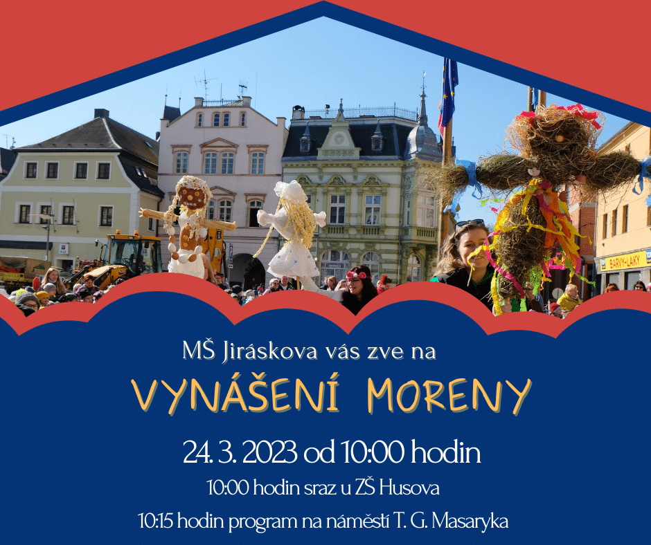 Přivítejme společně s dětičkami jaro v pátek 24. března 2023 v 10:00 hodin je sraz u ZŠ Husova, odkud se pochoduje s Morenou na náměstí, kde se můžou přidat i všichni ostatní.