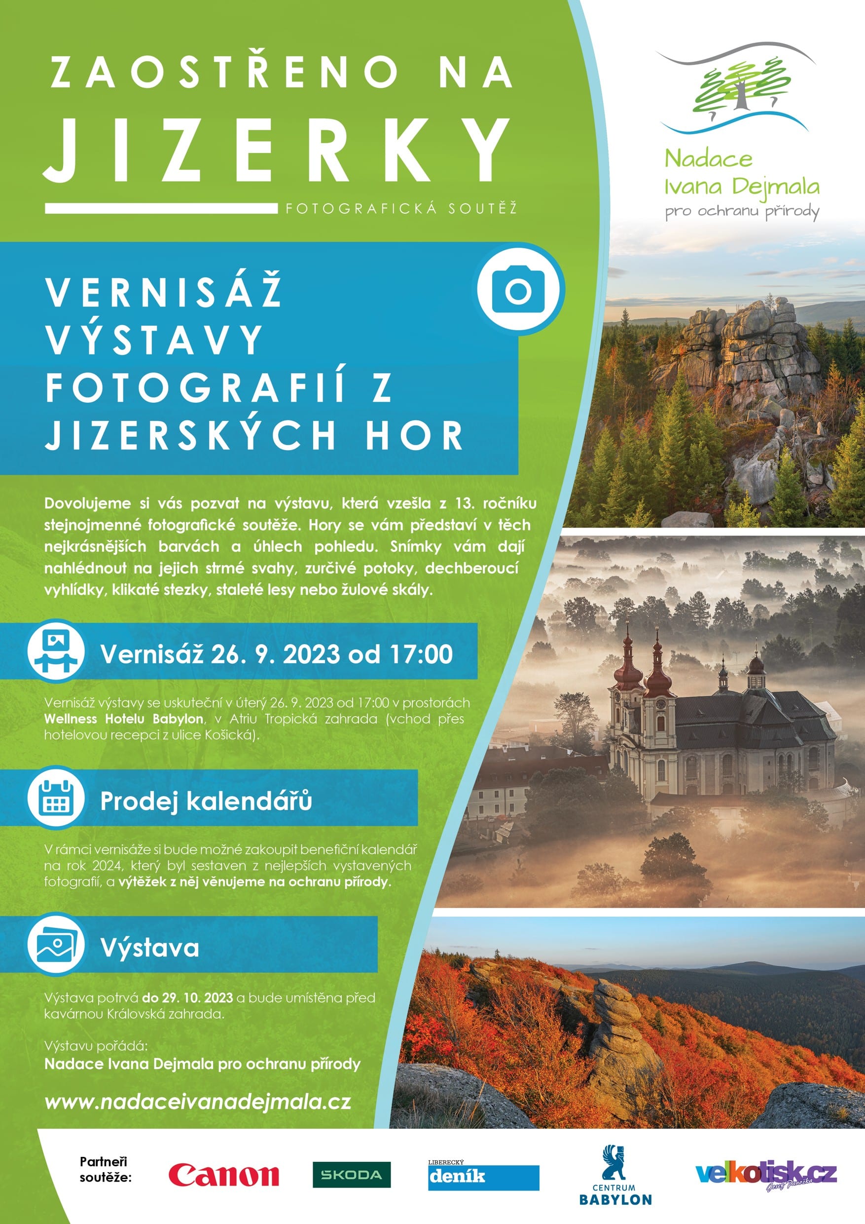 Vernisáž výstavy se uskuteční v úterý 26.09.2023 od 17:00 v prostorách libereckého Hotelu Babylon, v Atriu Tropická zahrada (vchod přes hotelovou recepci z ulice Košická).