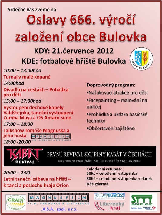 BULOVKA – Obec Bulovka srdečně zve na Oslavu 666. výročí založení obce se spoustou