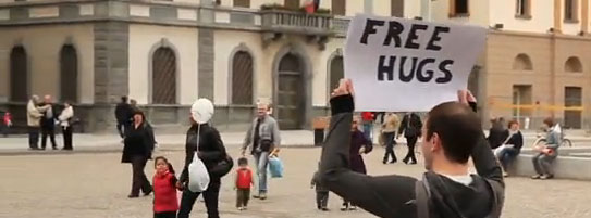 Nedávno mne překvapila dcera (16 let), kdy jsem s ní šla po městě (mimořádná událost, obvykle s semnou nikam chodit nechce) a ona se pořád cestou s někým objímala. Objímala své bývalé spolužáky, i když už s nimi pár měsíců není ve třídě, objímala své kámošky z diskotéky, ale zastavila se a objala i tzv. „přátele“, které zná pouze z facebooku… Možná je objímání trend, ale možná je to návrat k hodnotám. Vlastně jsme všichni jeden živočišný druh. Všichni na jedné lodi zvané Země a všichni jsme nohatí, rukatí, okatí, břichatí, dokonce máme všichni mozek a srdce. Všichni víme, co je láska, co je mít chuť k jídlu, nebo taky co znamená mít, či nemít peníze, nebo taky moc dobře všichni víme, jaké to je spěchat na toaletu anebo se prostě jen těšit domů, když venku řádí zima a déšť. Jsme vlastně všichni sestry a bratři a proč se tedy neobjímat? Když jsem dceru viděla, s jakým nadšením se vrhá do objetí a jak si to objetí i užívá – asi se mám co učit. A zřejmě nejen já. Tady ve videu můžete vidět, jak některé objetí povzbudí, jak je to pro někoho cizí, jak je někdo plný otázek – proč objetí? Anebo je naopak ve videu krásně vidět, jak děti jsou pro objetí absolutně otevřené, bez jakýchkoliv předsudků, nedůvěry, či zbytečných otázek…
