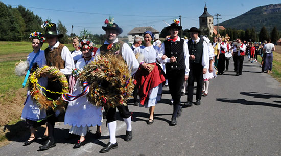 „Krajské dožínky se letos slavily po jedenácté. Byla to přehlídka zemědělských a potravinářských subjektů. Na své si tak přišli milovníci dobrého jídla i regionálních výrobků, které zde byly zastoupeny téměř čtyřicítkou výrobců. Nechyběla ani tradiční bohoslužba Díkuvzdání Bohu za úrodu v brnišťském kostele. Podívanou pro všechny přítomné byl dožínkový průvod, který vycházel od kostela a zamířil do dějiště samotné slavnosti – areálu Zátiší. V čele průvodu nesli krojovaní členové folklorního souboru Horačky dožínkový věnec, který pak předali hejtmanovi kraje. Velký úspěch u přihlížejících sklidili místní zemědělci, kteří vyzdobili své stroje a zapojili se do slavnostního průvodu. Jejich techniku si pak návštěvníci areálu mohli během celého dne prohlédnout,“ popsal začátek dožínek náměstek Josef Jadrný.