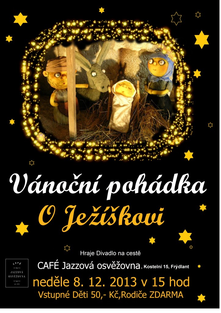 FRÝDLANT – Pozvánka na vánoční pohádku pro děti 8. 12 .2013 od 15.00 v CAFÉ JAZZOVÁ OSVĚŽOVNA ve Frýdlantě.