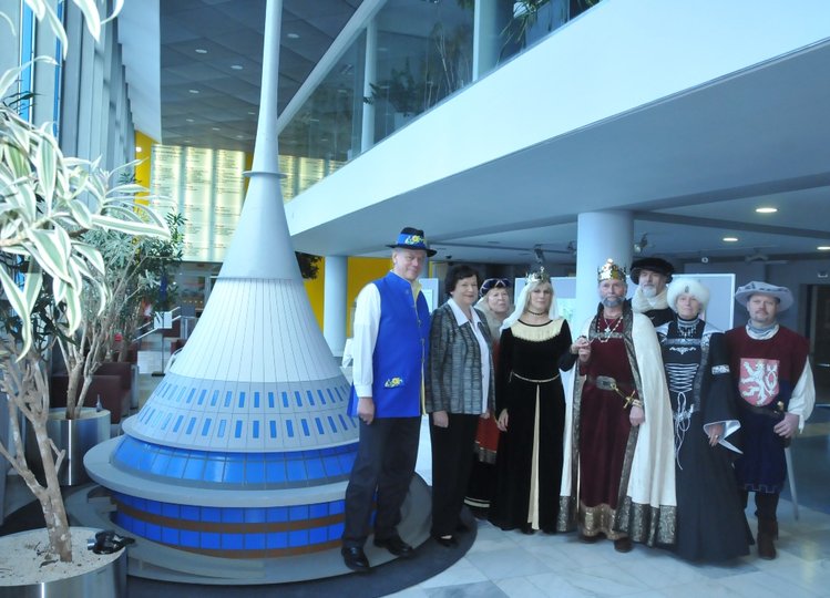 Malá hornolužická družina císařského průvodu Karla IV. s chotí v historických kostýmech zavítala v závěru minulého týdne do sídla Libereckého kraje v Liberci. U symbolu kraje – modelu Ještědu ve vestibulu Krajského úřadu LK hosty přijala náměstky hejtmana LK Hana Maierová.
