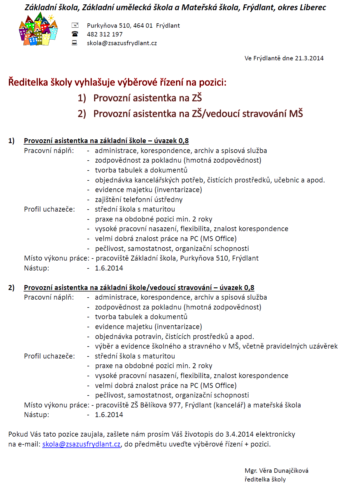 Zdroj: Základní škola, Základní umělecká škola a Mateřská škola, Frýdlant