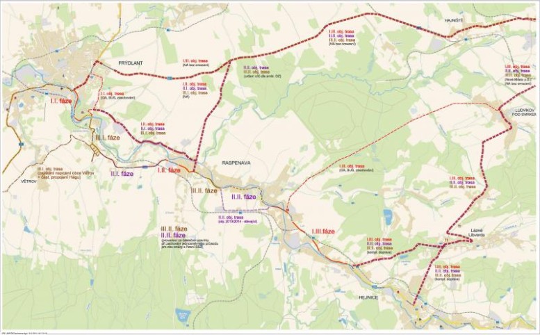 Zamýšlené vedení objízdných tras pro jednotlivé úseky zde: Mapa objížděk 2014/2015