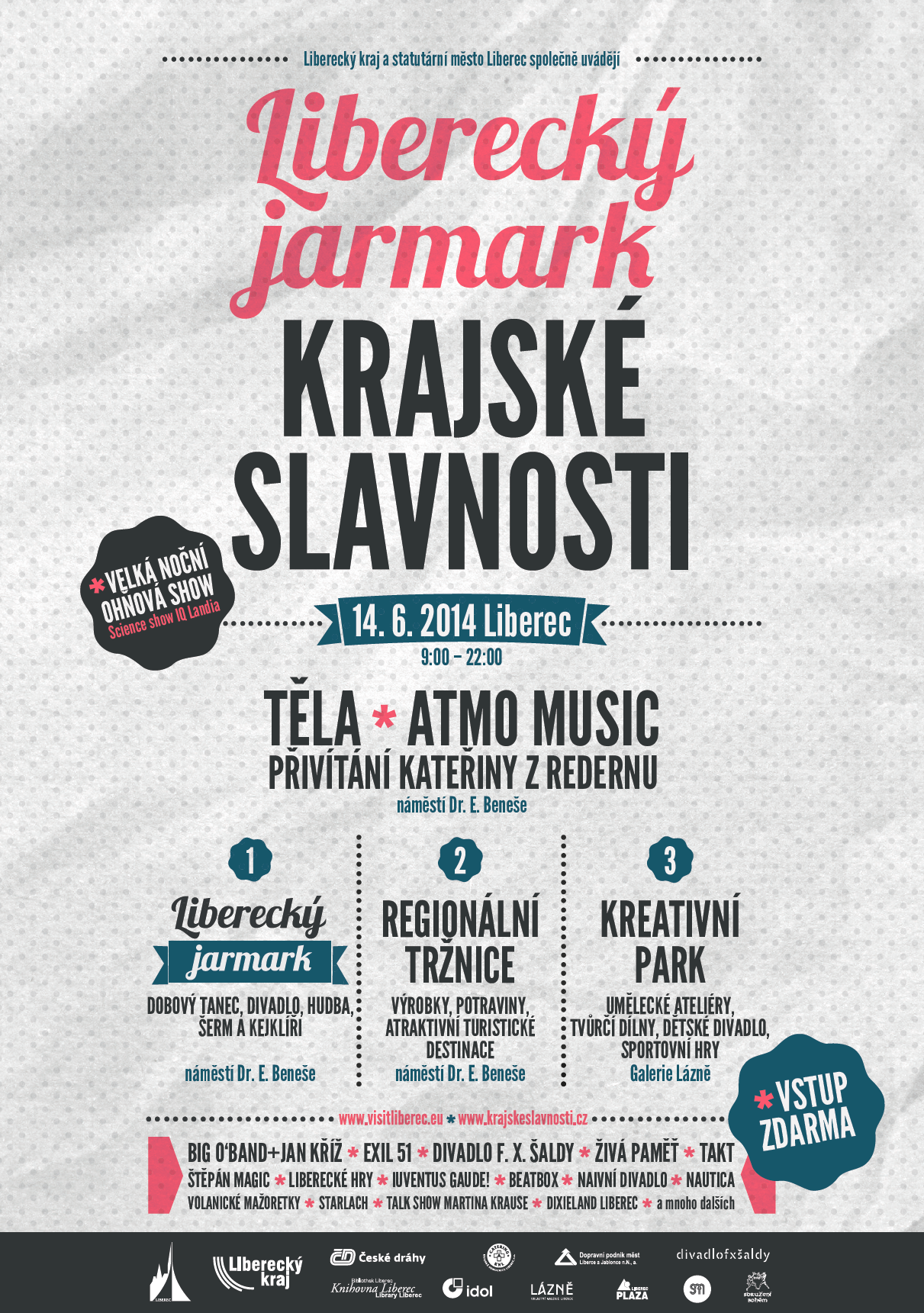 Kromě toho se na pódiu ještě vystřídají EXIL 51, Těla, ATMO Music nebo Big O`Band s Janem Křížem. Svézt se můžete také historickou tramvají. Celodenní akci zakončí velká noční ohnivá show. Těšíme se na Vás!