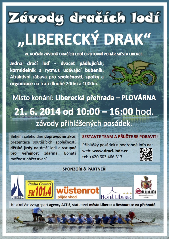 Vodní nádrž STARÝ HARCOV – Liberecká přehrada, bude opět hostit na místní plovárně dračí posádky. Jizerský drak, RK Dragons Jablonec n.N, STRATOS AUTO TEAM, Dragons CZ a Piráti z Bentelleru tak to jsou vítězové předchozích ročníků v hlavním závodu na 200m. I letos se jede závod na 1 km, který dokázal v minulosti zamíchat pořadím.