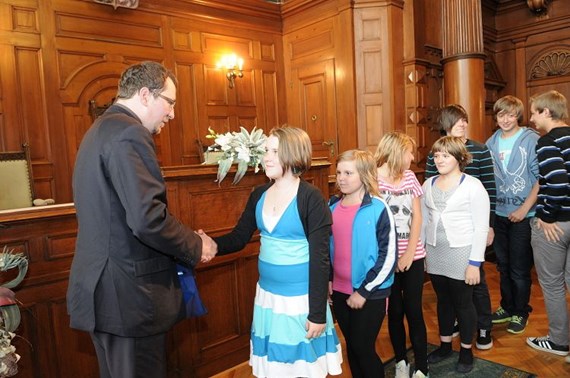 Zástupce obou škol, žáky a jejich učitele, přivítal ve čtvrtek 26. června v obřadní síni liberecké radnice náměstek primátorky Kamil Jan Svoboda. „Liberec je po Praze jediným městem, které bylo letos oceněno více než jednou. Titul získaly hned dvě naše školy. Znamená to pro ně velký úspěch a zaslouží si poděkování za práci, kterou svědomitě odvádí,“ řekl Kamil Jan Svoboda.